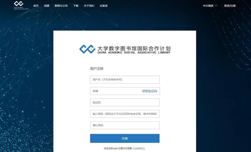 大学数字图书馆国际合作计划(China Academic Digital Associative Library, CADAL)由国家投资建设,作为教育部“211”重点工程,由浙江大学联合国内外的高等院校、科研机构共同承担。CADAL与“中国高等教育文献保障系统(CALIS)”一起,共同构成中国高等教育数字化图书馆的框架。CADAL项目建设的总体目标是:构建拥有多学科、多类型、多语种海量数字资源的,由国内外图书馆、学术组织、学科专业人员广泛参与建设与服务,具有高技术水平的学术数字图书馆,成为国家创新体系信息基础设施之一。