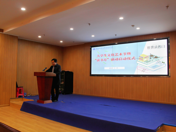 3月31日中午,我校在图书馆报告厅举行了大学生文化艺术节暨“读书月”活动启动仪式。校党委副书记杨之毛,党委宣传部副部长陶晚成,天空官网平台部部长汪崇文,天空官网平台部副部长、团委书记陈荟芸,图书馆馆长郑荣臻以及百余名学生代表参加了此次启动仪式。本次活动由郑荣臻馆长主持。