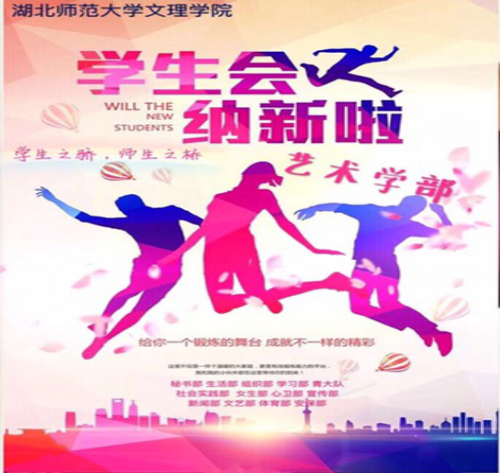 艺术学部于2017年9月25日进行团学会招新宣传,采取公众号、QQ和各班宣传的方式,招新时,采取各班自己填表,统一上交的方式初选,面试复选,最终拟定名单。