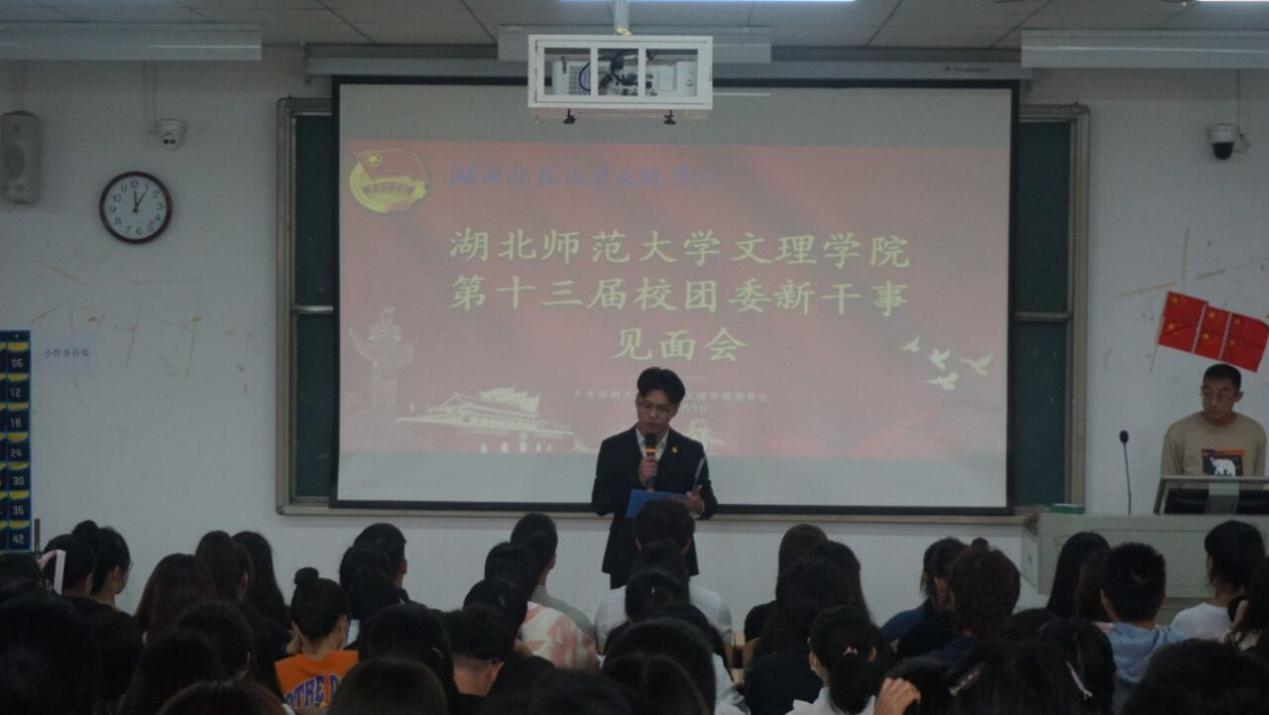(通讯员:张清)10月9日中午12:00,我校第十三届校团委新干事见面会在1B313隆重召开。校团学联主席黎博出席了此次见面会,团委全体干部和干事参加了本次会议。会议由范丰源主持。