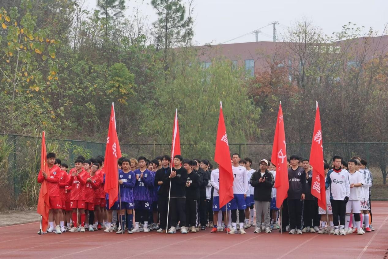 (通讯员:罗绪梅)为深入贯彻国家阳光体育运动精神,推动校园足球的蓬勃发展,11月25日中午,我校于学校足球场举办以“超越从足下起航”为主题的第一届“大力神杯”校园足球联赛活动开幕式。团委书记兼学工部副部长陈荟芸书记、财务部部长万理飞、教育与艺术学部党总支书记李先华、团委指导老师汤可、向品源、经济与管理学部团学指导老师姜希望、公共课部绿茵足球社指导老师江益臣出席了此次开幕仪式。开幕式由赵丹和吴皓主持。