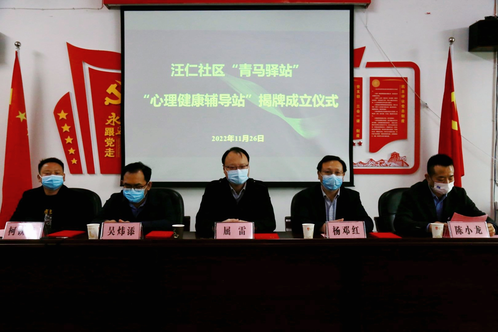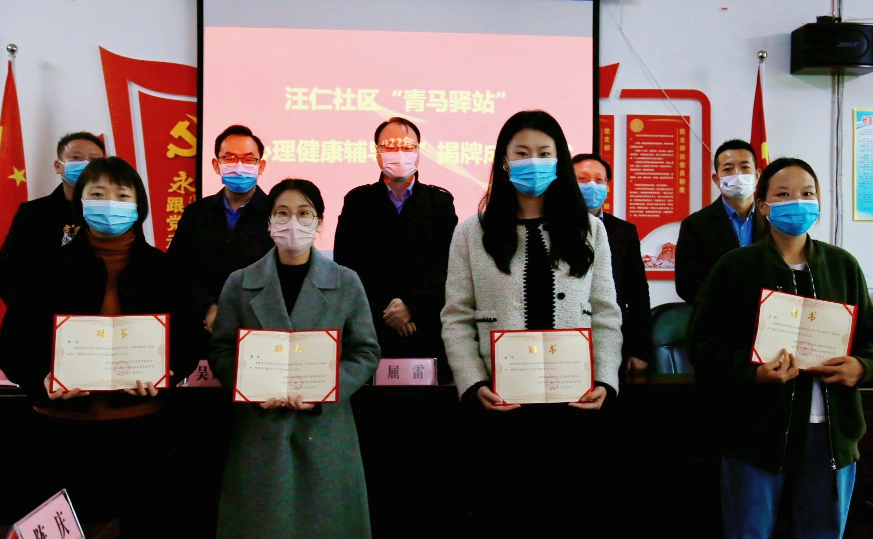 (通讯员:何馨妍、张力、张清)为大力弘扬志愿服务精神,探索基层现代化治理模式,推进“下基层察民情解民忧暖民心”实践活动走深走实,11月26日上午9点,汪仁社区在会议室隆重举行“青马驿站、心理健康辅导站”揭牌成立仪式。共青团黄石市委副书记屈雷、天空官网平台党委书记杨邓红、共青团黄石市委组宣部吴炜添、文理学院团委书记陈荟芸、心理咨询中心主任陈庆、教艺学部团总支书记谭青、团委指导老师汤可、汪仁社区党支部书记柯钦容及志愿者们参加了会议。会议由驻社区书记陈小龙主持。