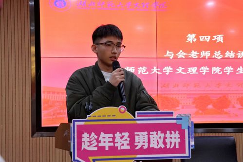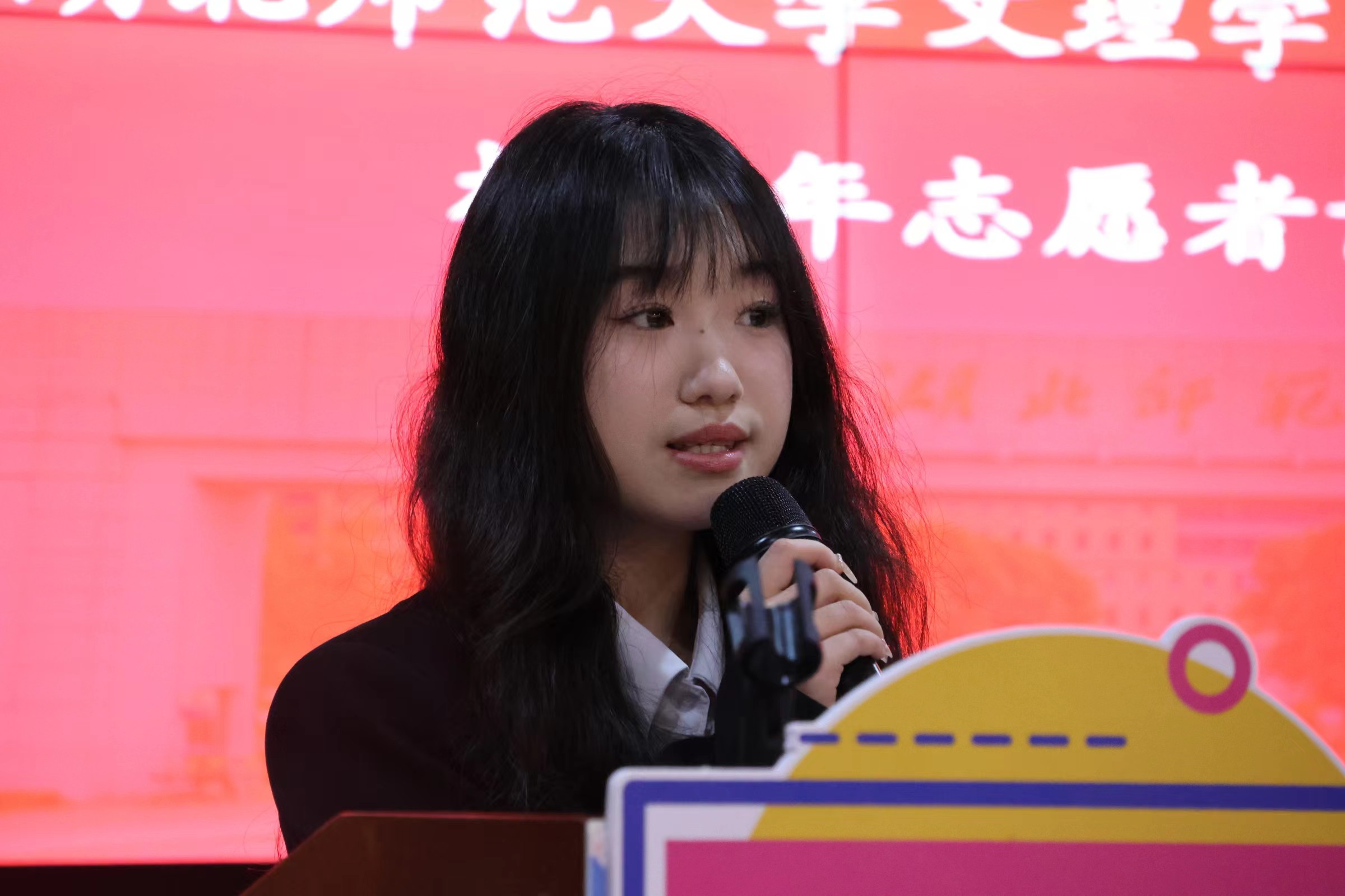 会议第二项,湖北师范大学校团委学生副书记黄凯龙发言,他通过总结湖北师范大学一直以来的发展方针及所获的荣誉向大家分享三点经验:一是坚持以习近平新时代中国特色社会主义思想为指导,全面贯彻党的二十大精神,深入学习习近平总书记关于青年工作的重要思想,持续开展青年大学习和团日活动;二是坚持服务中心大局,紧扣服务青年工作生命线,引导广大团员青年学生在社会课堂上就教育长才干做贡献;三是坚持专业专精,锤炼过硬本领,以自身激情感染广大青年,以自身能力引领青年群众。