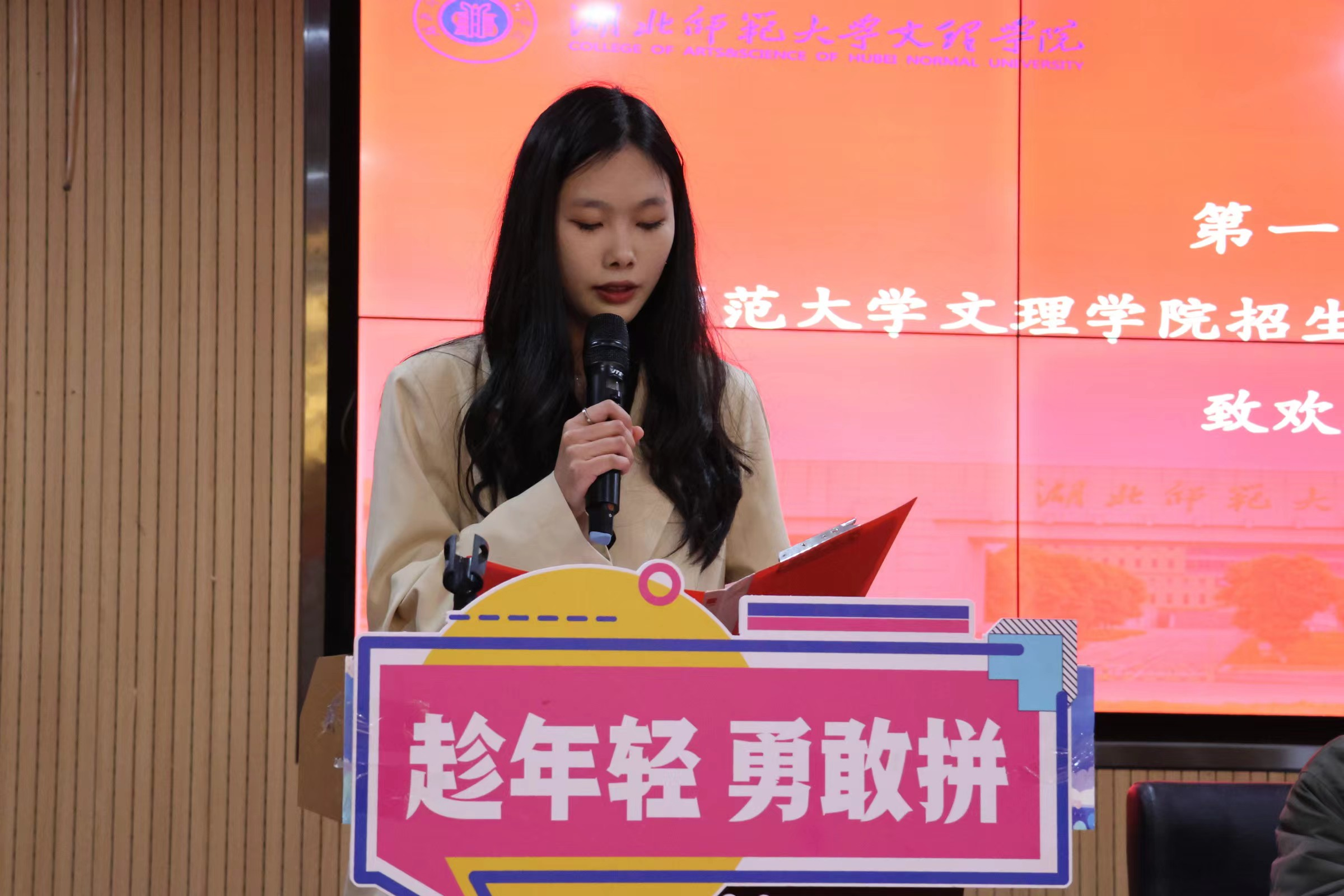 会议第一项,天空官网平台天空官网平台部招生宣传媒体中心负责人杨洲致欢迎词,她对湖北师范大学团学骨干表示欢迎与感谢,同时表明交流会能为两校提供一个相互交流相互学习的机会,促进两校学生组织进步与成长,希望通过本次活动能真正的加强学校学生组织管理制度,促使两校团学工作进一步发展。