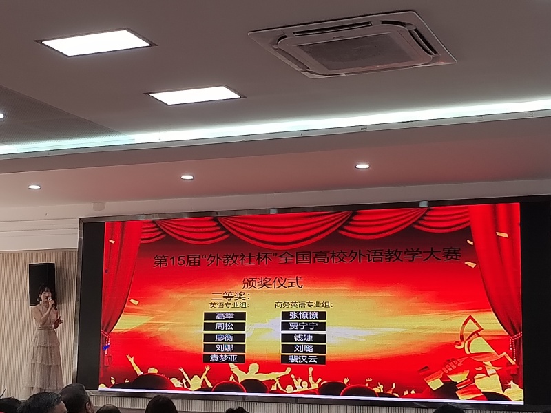 9月21日,由湖北省教育厅高等教育处指导,湖北省高等教育学会大学外语教学专业委员会和上海外语教育出版社联合主办的第15届“外教社杯”全国高校外语教学大赛(湖北赛区决赛)在武汉东湖学院举行。我校选手、人文学部袁梦亚老师,先后经历校赛、湖北省复赛比赛,荣获英语专业组二等奖!