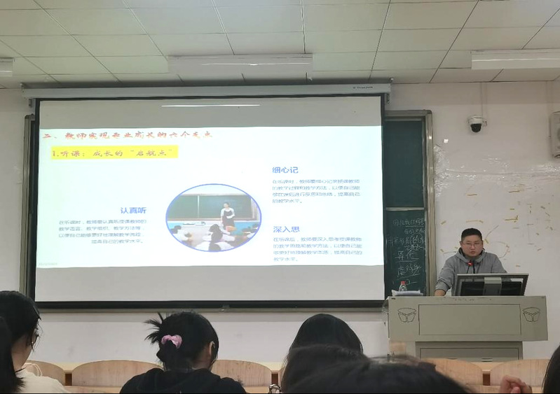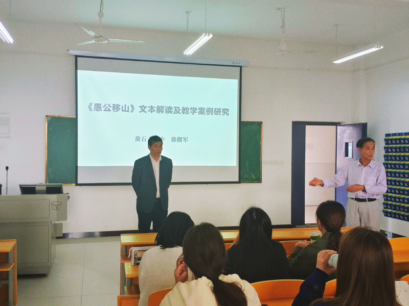 2024年11月4日下午,第三期“名师进课堂”在我校3号实验楼419教室如期开展。汉语言文学专业由黄石十六中名师徐拥军主讲。此次讲座的主题为《愚公移山》文本解读及教学案例研究。徐老师从当下师范生最难理解和实践的文本解读环节开始讲起。他借古代诗人贺知章的《咏柳》和初中课文《愚公移山》跟大家做了文本解读的问答互动。引导师范生深入理解文本,强调启发式教学的重要性,帮助学生克服阅读障碍,提升解读能力。他指出,文本解读应结合普通阅读、专家分析、教学目标与学生实际,避免盲目解读。本次“名师进课堂”活动充分展现了名师的引领作用,为师范生提供了宝贵的学习机会。