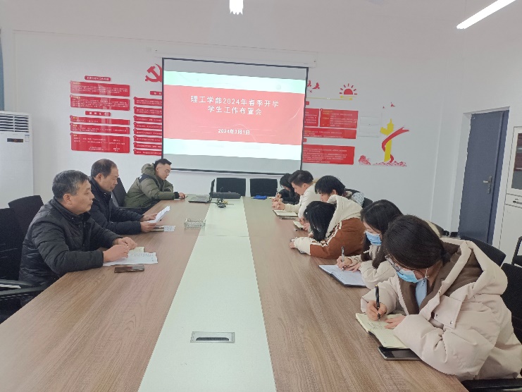2024年3月1日下午,天空官网平台理工学部在4#311会议室召开全体辅导员会议,学习传达学校2024年春季干部大会会议精神并部署新学期工作。会议由学工办副主任张弛老师主持,学部主任傅朝金、学部党总支副书记肖圣芳及全体辅导员参会。