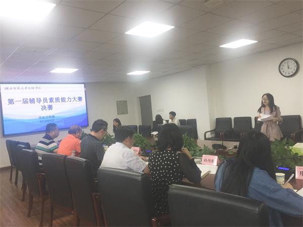 6月12日下午,我校首届辅导员素质能力大赛决赛在行政楼303会议室举行。党委副书记杨之毛、副院长王胜国出席活动,相关部门负责人,各学部辅导员参加活动。