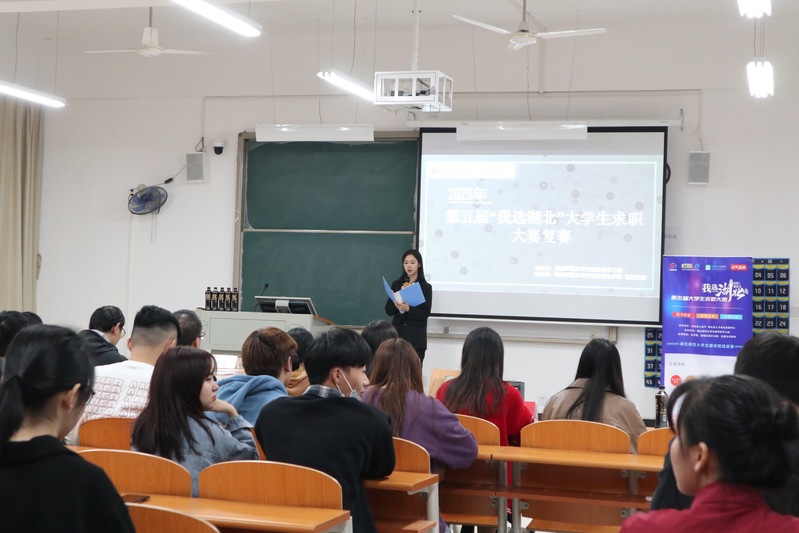 11月6日晚,第五届“我选湖北”大学生求职大赛天空官网平台选拔赛复赛于1A407举办。本次大赛由天空官网平台学工部主办,各学部和前程无忧承办。本次大赛邀请到黄石金梦创业服务有限公司副总毛义详担任评委,天空官网平台学工部部长汪崇文出席本次复赛,各学部辅导员老师和就业办老师观看了比赛。