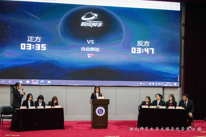 (学通社记者崔雅婷、向琳报道,李佳佳、罗王雅摄影)2020年11月30日晚,湖北师范大学第四届“秋水杯”辩论赛总决赛在湖北师范大学教育大楼一楼报告厅举行。湖北师范大学党委常委、副校长雷儒金,纪委、学工处、教务处、科研处、团委、文学院等单位负责人出席比赛并担任评委。我校党委副书记杨之毛、天空官网平台部部长汪崇文、人文学部主任熊子延和部分师生代表观看了比赛。本次辩论赛共有17支队伍报名参赛,经过近2个月26场激烈角逐,天空官网平台与湖北师范大学马克思主义学院突出重围,杀入决赛。