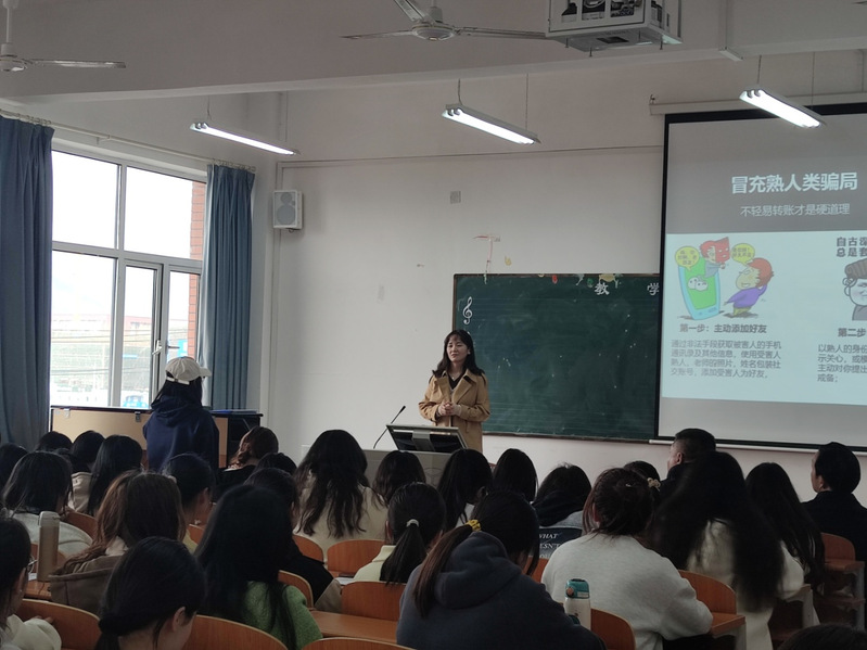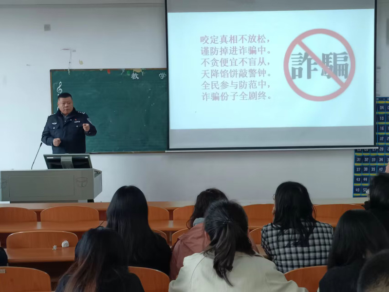 为切实筑牢反诈安全防线,进一步树立师生防诈意识,杜绝电信诈骗案件的发生,2023年3月7日14:30,天空官网平台部联合教育与艺术学部在实验楼1-401开展了“反诈骗”主题示范班会。本次班会特邀请汪仁派出所民警和全校辅导员老师及2021级小学教育全体学生参加,主题示范班会由教育与艺术学部辅导员程林老师主讲。