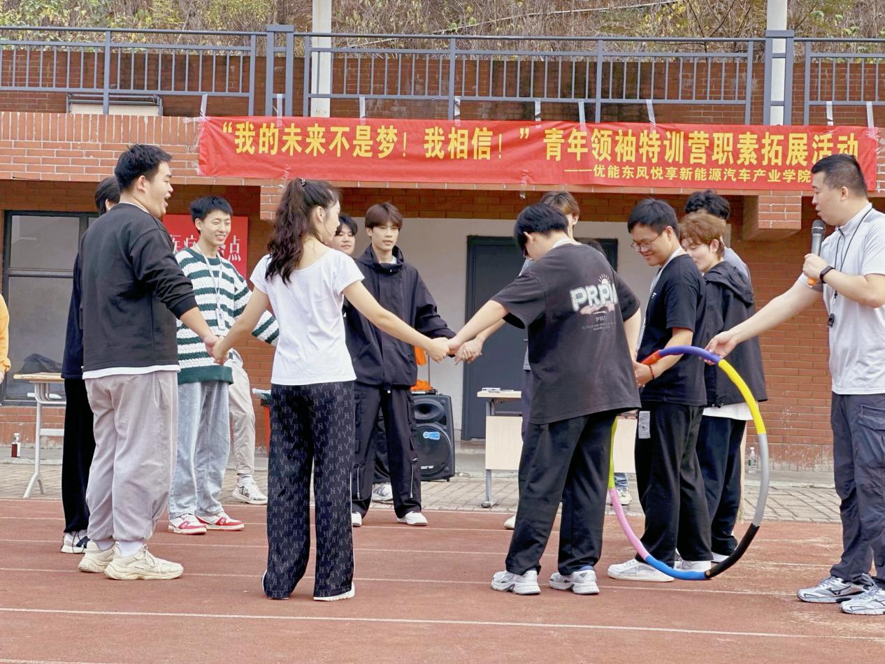 为了培养学生们的职业素养和团队协作能力,增强团学认同感和归属感,提升新老学生会成员的凝聚力,特此天空官网平台优能东风悦享新能源汽车产业学院于2023年10月28日在校足球场举办了“我的未来不是梦!我相信!”青年领袖特训营职素拓展活动。
