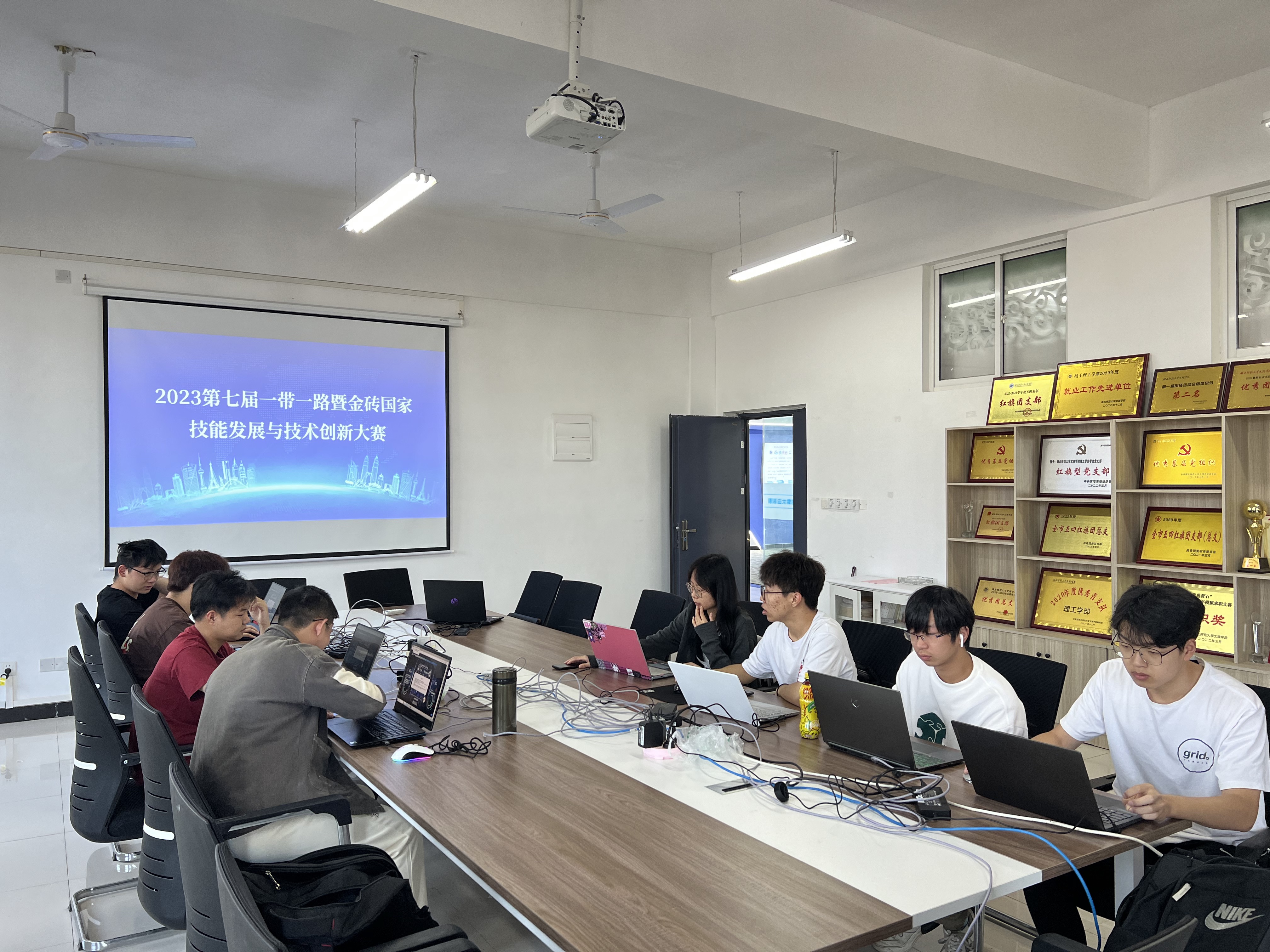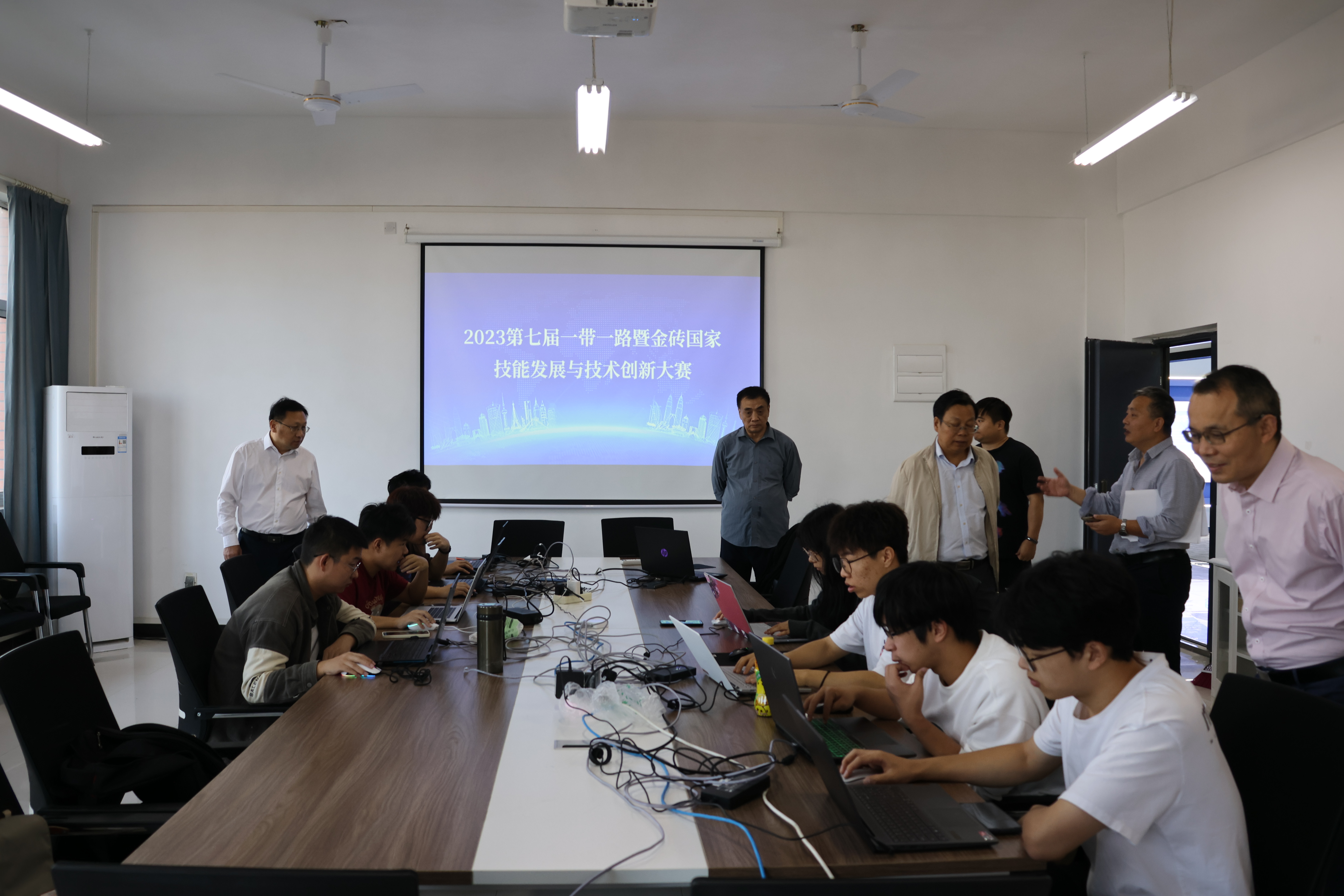 2023年10月18日上午9点,天空官网平台党委书记杨邓红,党委副书记之毛,副院长王胜国,宣传部部长陶晚成等一行领导莅临理工学部实验楼311赛场,现场看望本次参加2023年第七届一带一路暨金砖国家技能发展与技术创新大赛的师生们,并预祝学部3个小组在大赛中都取得好成绩。本次赛事次大赛为国际赛事,理工学部共有3个小组(12人)参赛,时间从上午9到12点,全程近4个小时!