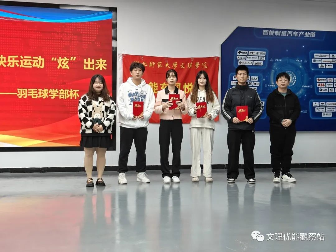 经过激烈的角逐,历时三天冠军选手终于诞生。羽毛球比赛颁奖于11月23日中午十二点五号实验楼开展。恭喜以下同学获奖。