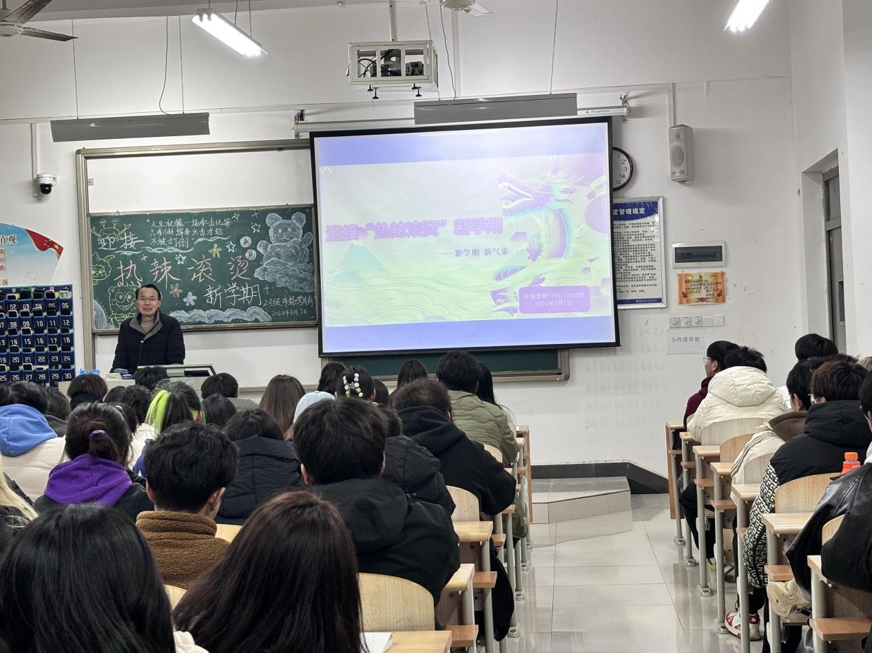 春风浩荡满目新,踔厉奋发启新程。为促进学生尽快投入新学期,进一步加强学风建设,迪科金融服务产业学院学工队伍在每个班级中开展新学期主题班会。其中,37日晚上7时,市场营销专业2301班、2302班举行“热辣滚烫”——新学期新气象主题班会。学校副校长王胜国教授出席,学院辅导员刘妍主持。