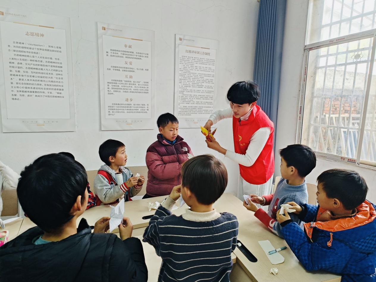 这次活动持续至4月份,主要是给乡村的孩子们辅导作业以及开设特色课,慰问空巢老人。