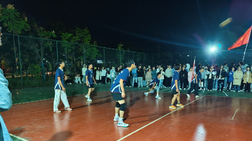 (本通讯 陈嫣然)20241121日,星期四的晚上,学校球场被热情与活力所笼罩,一场扣人心弦的排球比赛在此激情上演。夜色如同一块巨大的幕布,而明亮的灯光打在球场上,让这片场地成了众人瞩目的焦点。场边早已围满了热情的同学们,他们手中挥舞着自制的加油标语,脸上洋溢着期待的神情。当双方队员矫健的身影出现在球场上,现场的气氛瞬间被点燃,一场龙争虎斗一触即发。