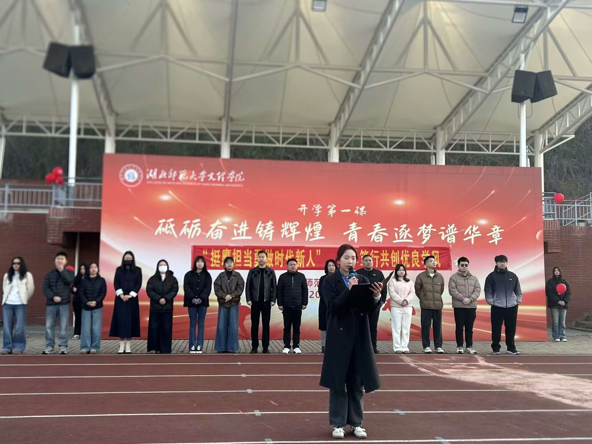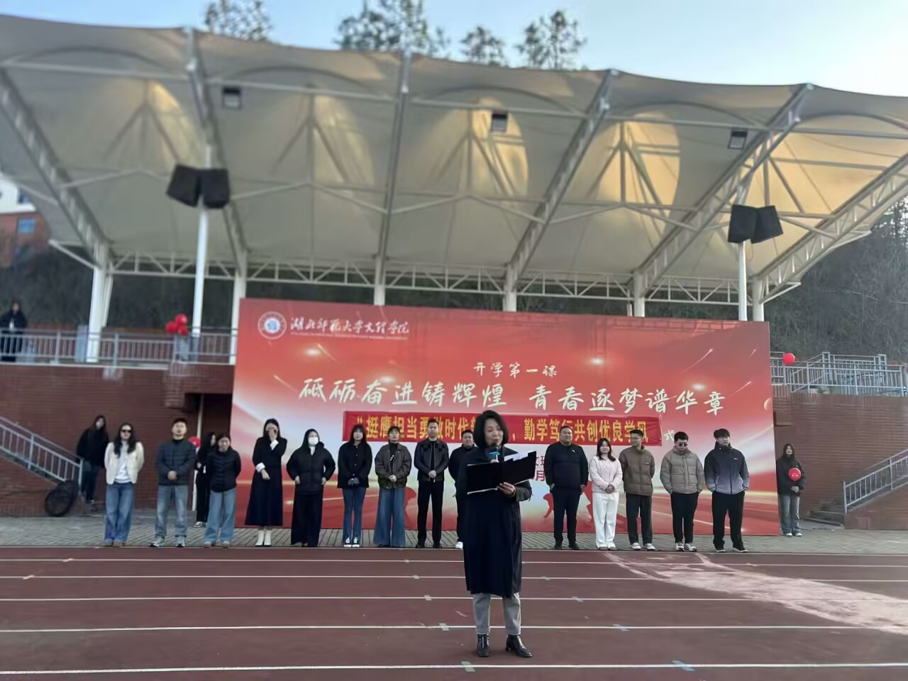 2025年3月17日,迪科金融服务产业学院举行了以“挺膺担当勇做时代新人、勤学笃行共创优良学风”为主题的升旗仪式,常婕院长、龚健主任以及全体师生参加仪式。