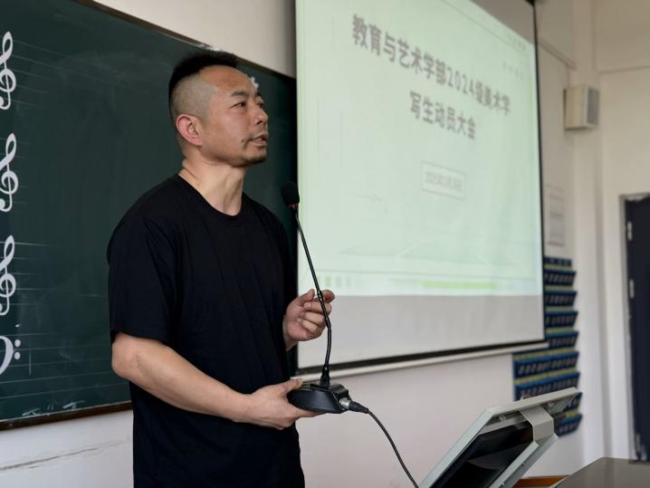 32612:00,教育与艺术学部2024级美术学专业春季艺术实践安全教育动员大会在1号实验楼403室召开。学部党总支副书记陈小龙主持会议并作动员讲话,学工办副主任张弛、美术专业负责人徐俊超及专任教师汤澜、胡蕾出席会议,2024级美术学专业全体学生参加。