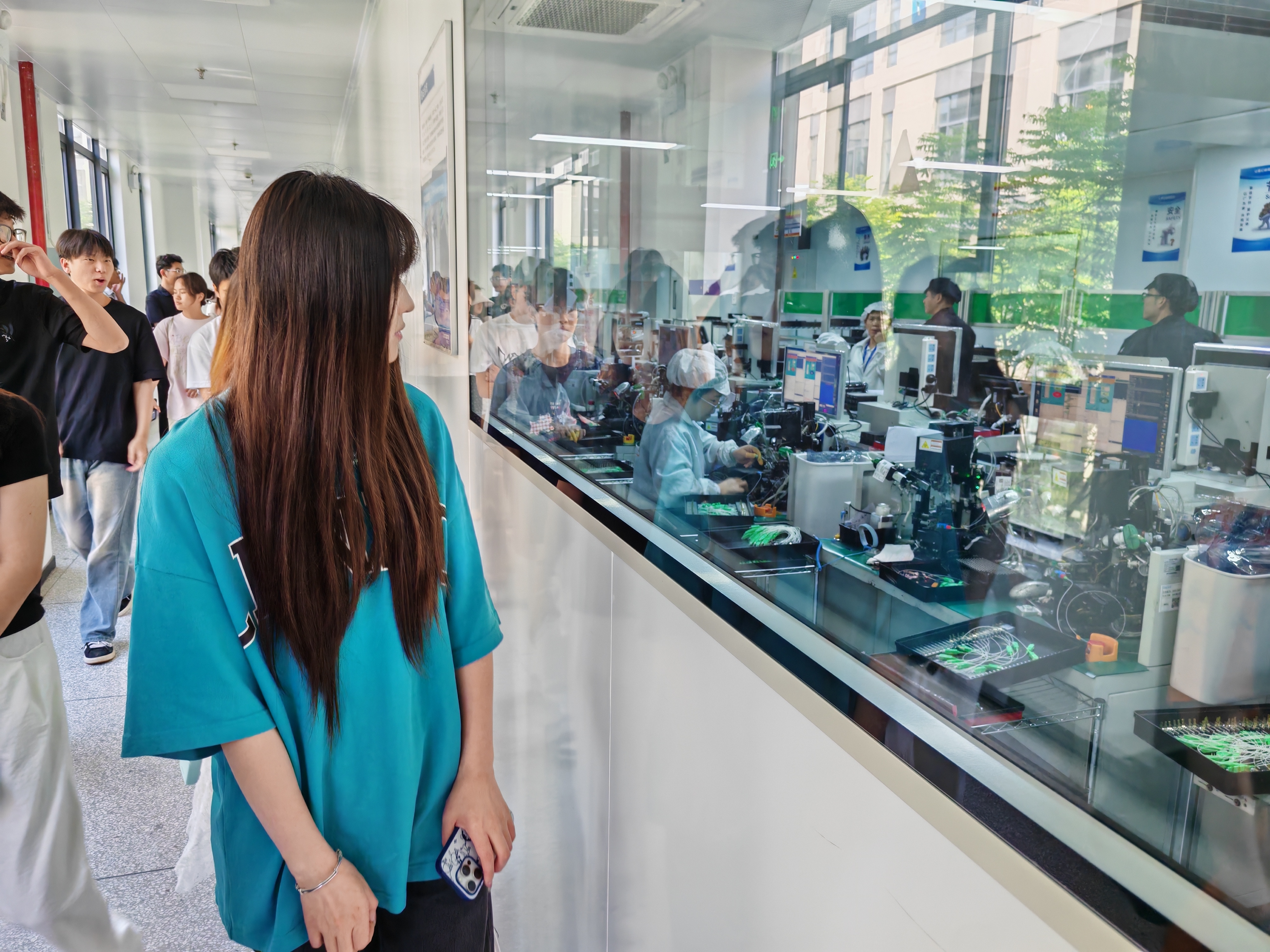 随后,师生们深入企业生产车间。洁净的车间环境、精密的生产设备、严谨的操作流程,都给大家留下了深刻印象。同学们近距离观察芯片的生产工艺,了解从原材料加工到成品检测的全过程,真切感受到了科技企业的专业与严谨。