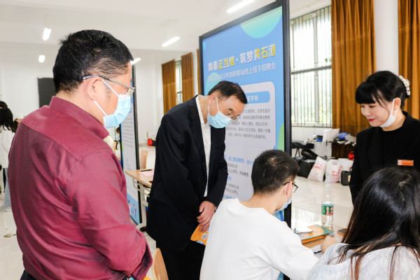 院长李开灿、常务副院长杨学斌、党委副书记杨之毛、副院长王胜国等校领导莅临现场,与用人单位招聘负责人进行面对面的交流,详细了解用人单位需求。李开灿院长在接受现场记者采访时表示:希望以此次交流为契机,更好的拓宽学校与各用人单位的合作空间,搭建合作平台,共同构建产教融合高质量人才培养体系,促进更深层次的互动。
