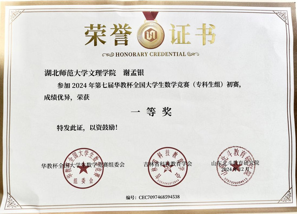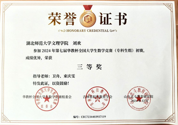 本网讯(通讯员 谭姣近日,2024年第七届华教杯全国大学生数学竞赛初赛成绩揭晓,我校优能东风悦享新能源汽车产业学院学子凭借扎实的数学功底和出色的临场发挥分别荣获专科生组一等奖和三等奖。