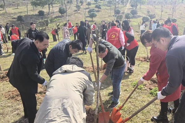 本网讯 320日上午,我校机关二支部全体教工党员携手人文学部学生党员志愿者,开展党建引领绿色行动 志愿服务践行初心环保实践与植树护绿活动,以红色力量守护绿色家园。