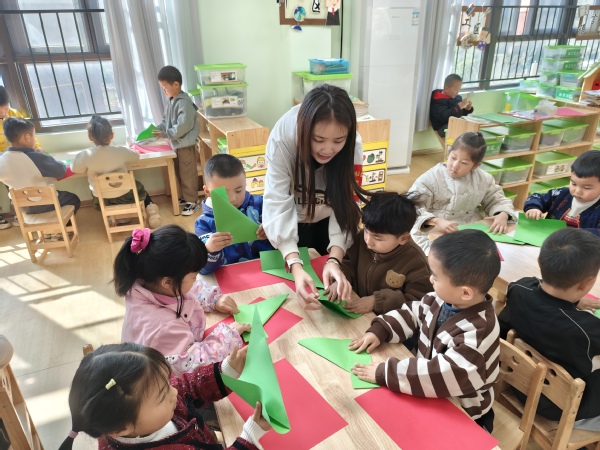 随后,志愿者将雷锋精神的传承融入手工课堂。通过播放动画短片《雷锋的故事》,以孩子们喜闻乐见的形式展现雷锋助人为乐、爱岗敬业的感人事迹。在手工制作环节,志愿者一边讲解雷锋帽的象征意义——红色的五角星代表着全心全意为人民服务的精神,一边手把手指导孩子们用彩纸折叠雷锋帽。活动现场,孩子们兴致勃勃地完成了30余顶独具特色的手工作品。