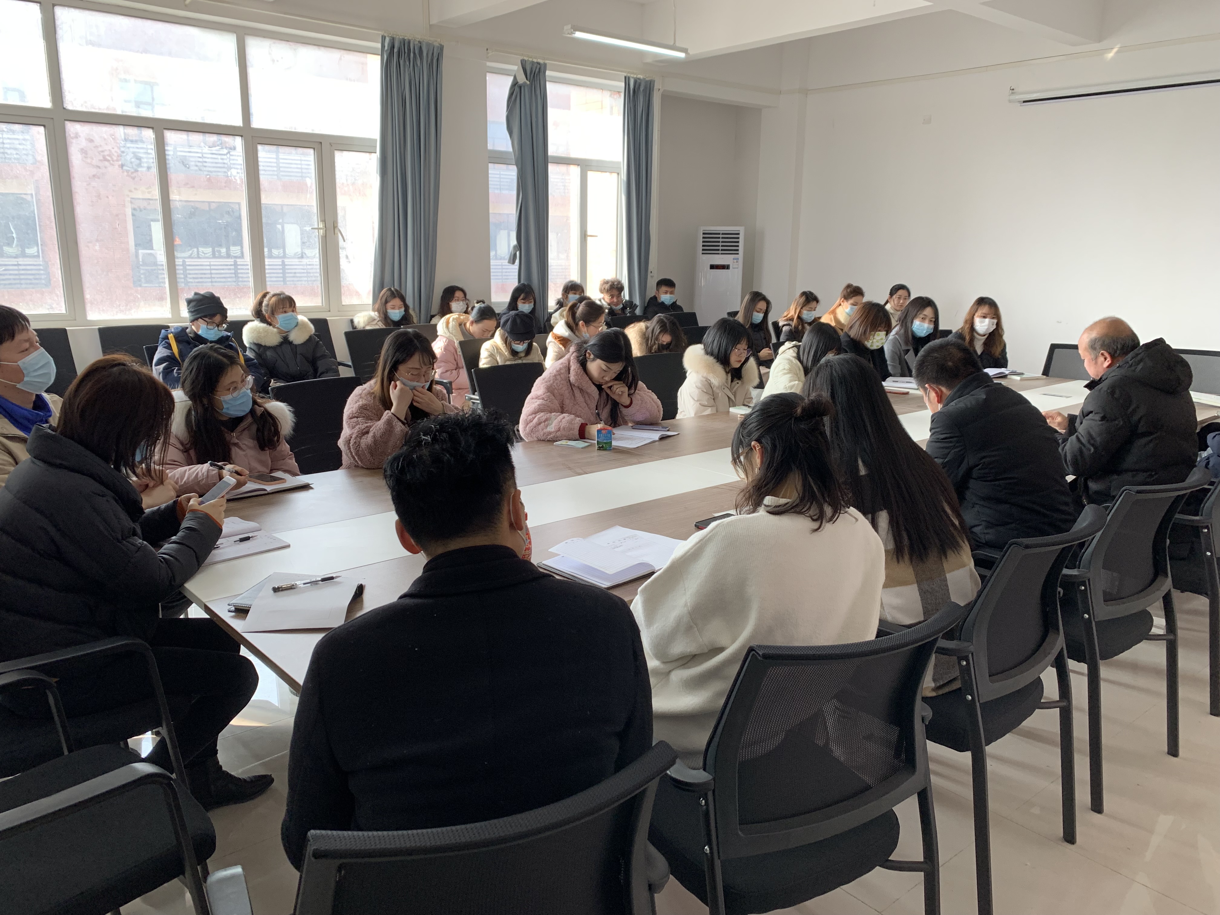 2022年2月24日上午9:30,教育与艺术学部在1号实验楼414会议室召开了教育与艺术学部新学期开学教职工工作会议,出席此次会议的有人文学部主任王文、党总支书记李先华、各专业专业负责人及教育与艺术学部自有全体教职工。会议包括以下议程:1、欢迎介绍新进教职工;2、学部书记强调春季开学师生防疫工作;3、学部主任总结寒假工作,并对学部开学初期工作进行强调、提要求;4、各教研室组织教师学习讨论工作,开展教研室活动。