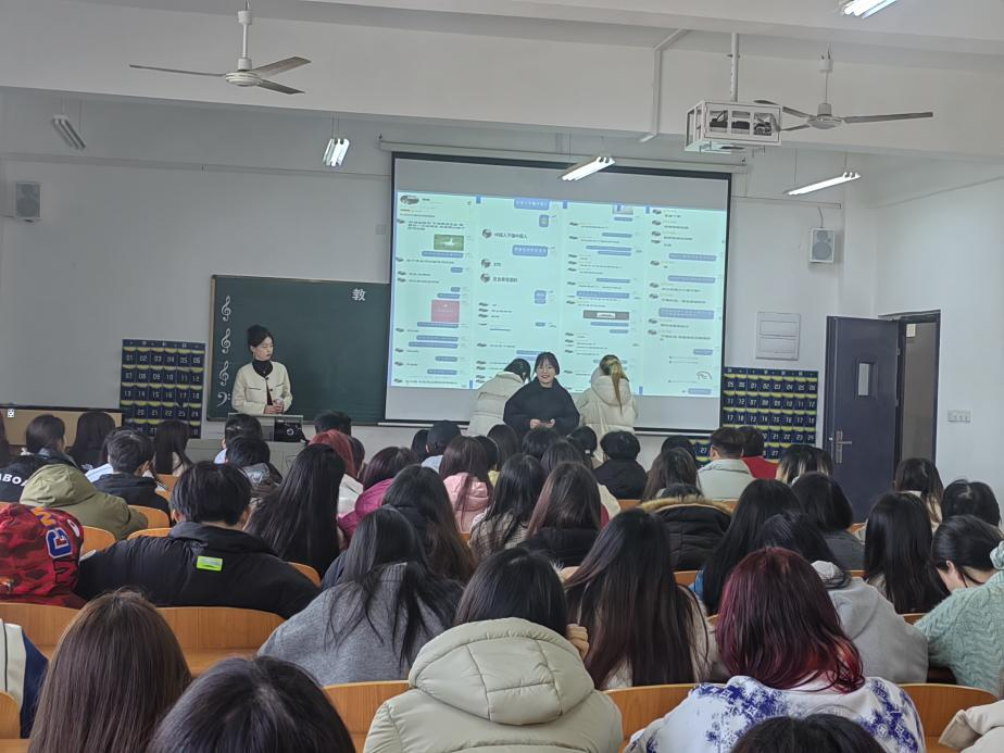 辅导员李雅欣从寒假生活、安全教育、开学收收心和新学期新展望四个方面展开,学生通过情景表演,展现了多种诈骗的形式,以此告诫同学们提高警惕,谨防网络诈骗。特别强调了校园的交通安全和宿舍安全,并结合数据图表分析了美术教育专业学生成绩和存在的不足,希望学生在新的学期里做好规划,好好学习,天天向上。