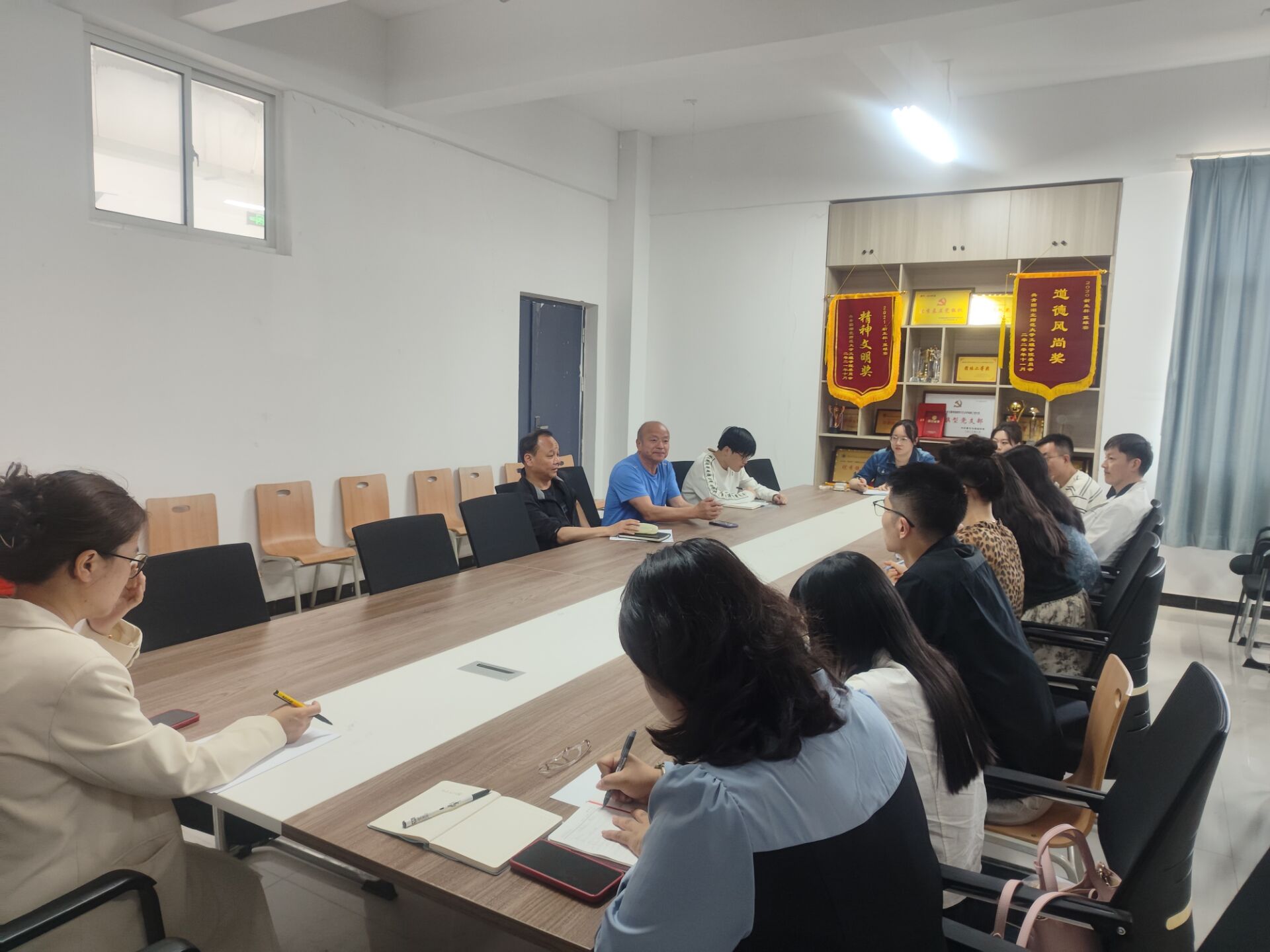 2024年4月23日中午12:00,教育与艺术学部在实验楼1#414会议室召开了秋季实习工作讨论会。由学部主任王文、书记李先华带领各专业教研室负责人、相关辅导员及教学办工作人员一同开展。会议上李书记就实习工作与就业的相关性做了分析,王主任就实习工作安排的重难点和注意事项进行强调。之后各专业负责人就本专业的特性和特点与辅导员进行了有针对性的探讨,与教学办等相关部门达成了各项实习工作的协作统一。本次会议为下半年的实习基地建设及实习工作开展奠定了稳固的基础。